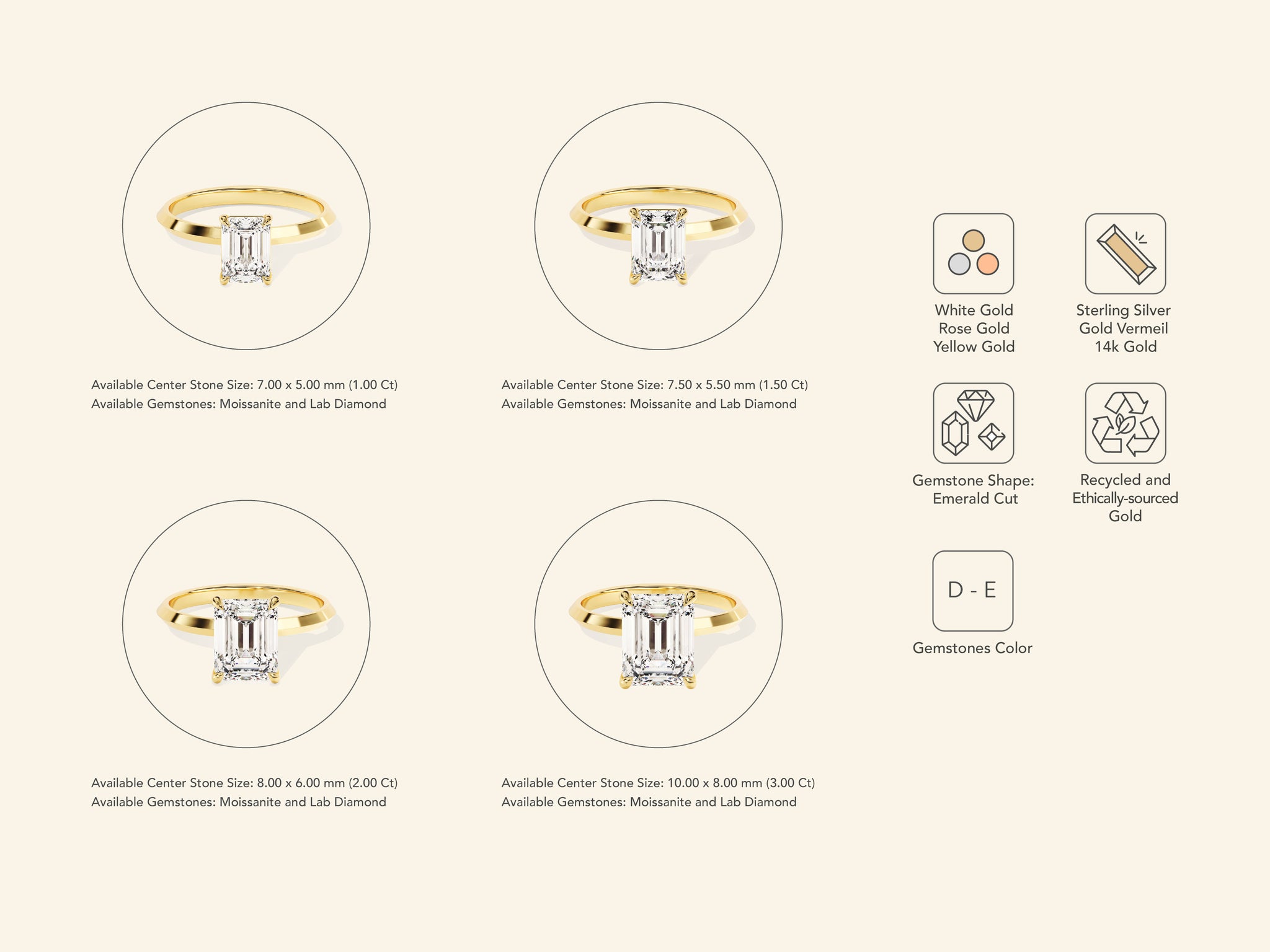 An enduring expression of elegance, this Knife Edge Emerald Engagement Ring is crafted with care in 14k solid gold, gold vermeil, or sterling silver. Its brilliant 3 carat emerald-cut stone sits on a slim, refined band, designed to shine with the quiet confidence of lab grown diamond or moissanite stone in every moment. Whether given as a symbol of love, a celebration of a milestone, or simply a piece to cherish every day, this ring offers lasting beauty and meaning.