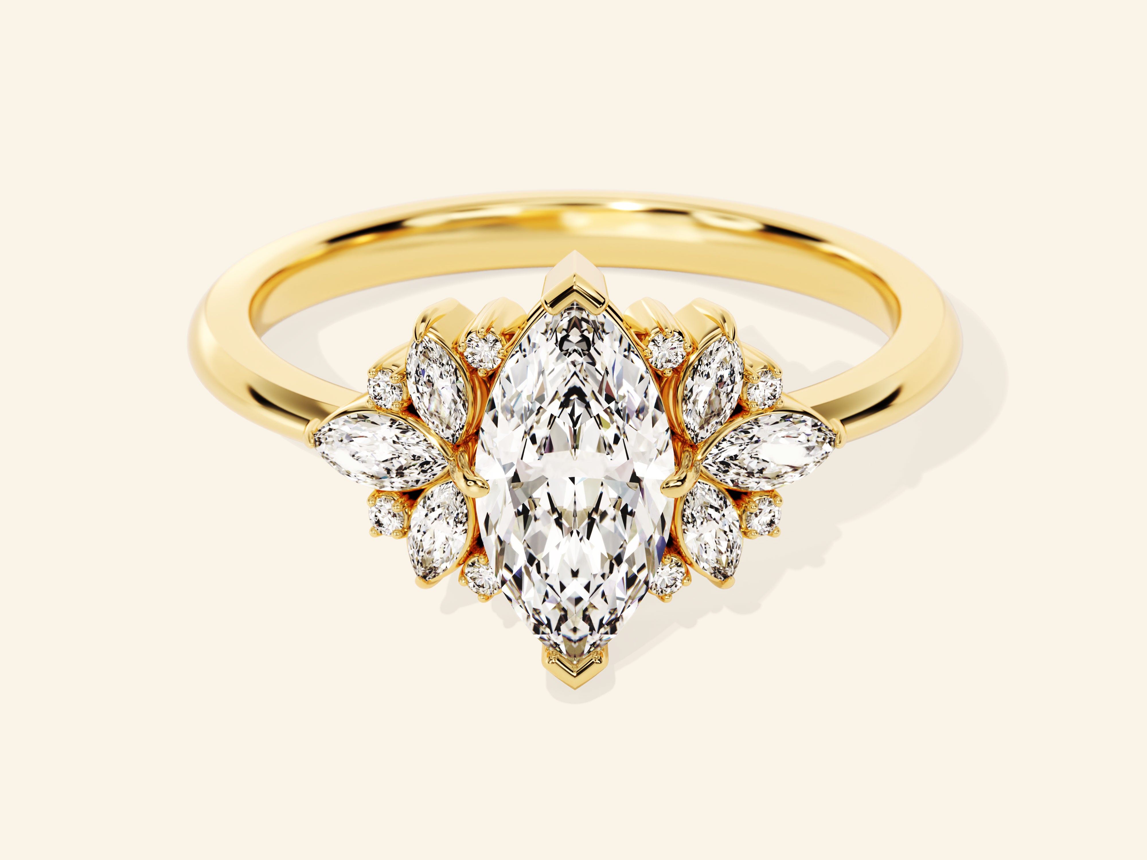 One of the most talked-about styles in the engagement ring world, the marquise cut adds drama to any ring. Its bold, unique elongated shape makes it a favorite for those who want something a little sharper and more striking. In our unique marquise engagement rings collection, you’ll find everything from timeless solitaires and halos to vintage engagement rings and three-stone designs. Whether you’re into the classics or looking for a ring with extra character, the marquise cut brings that modern edge that stands out.
