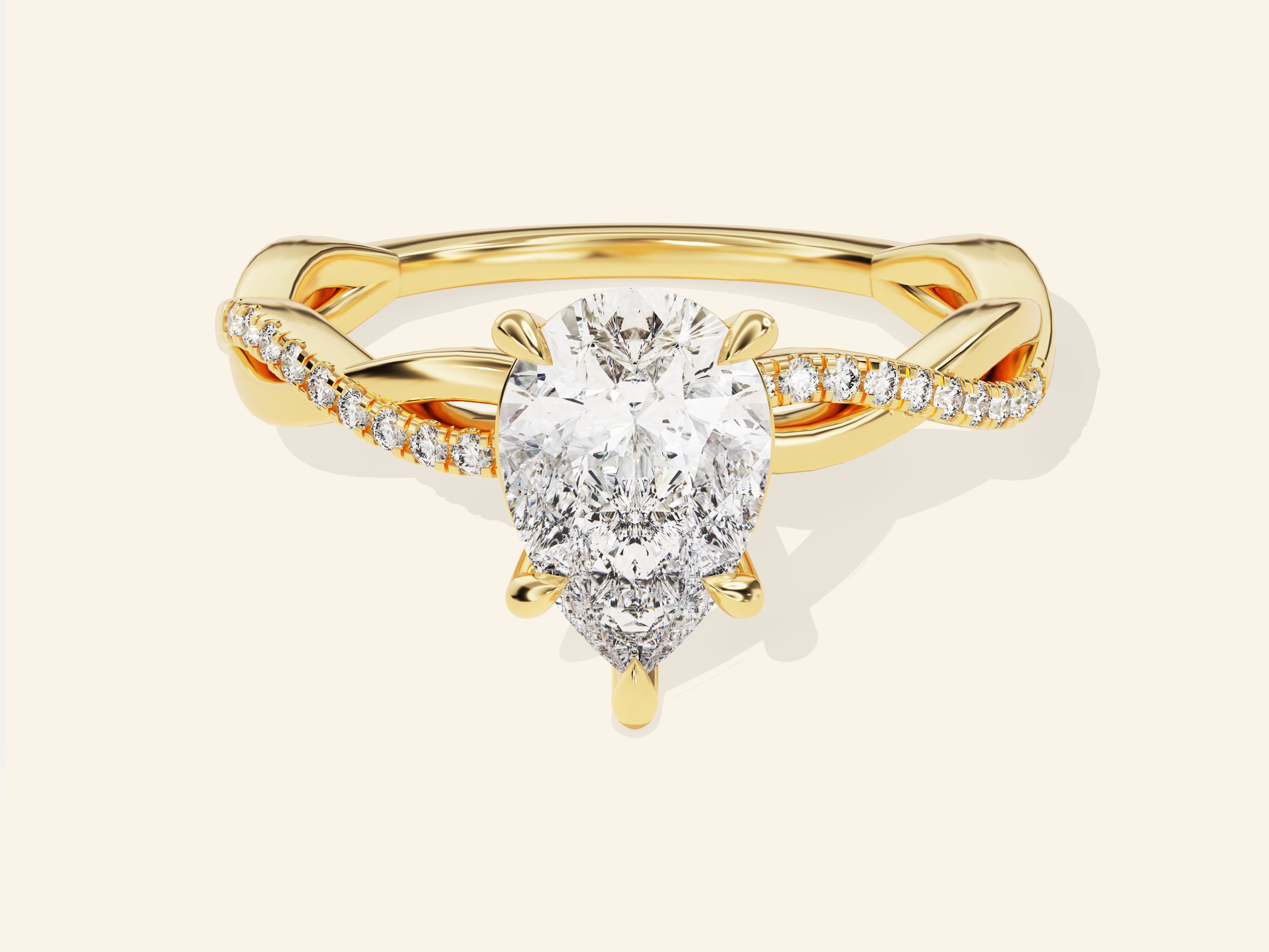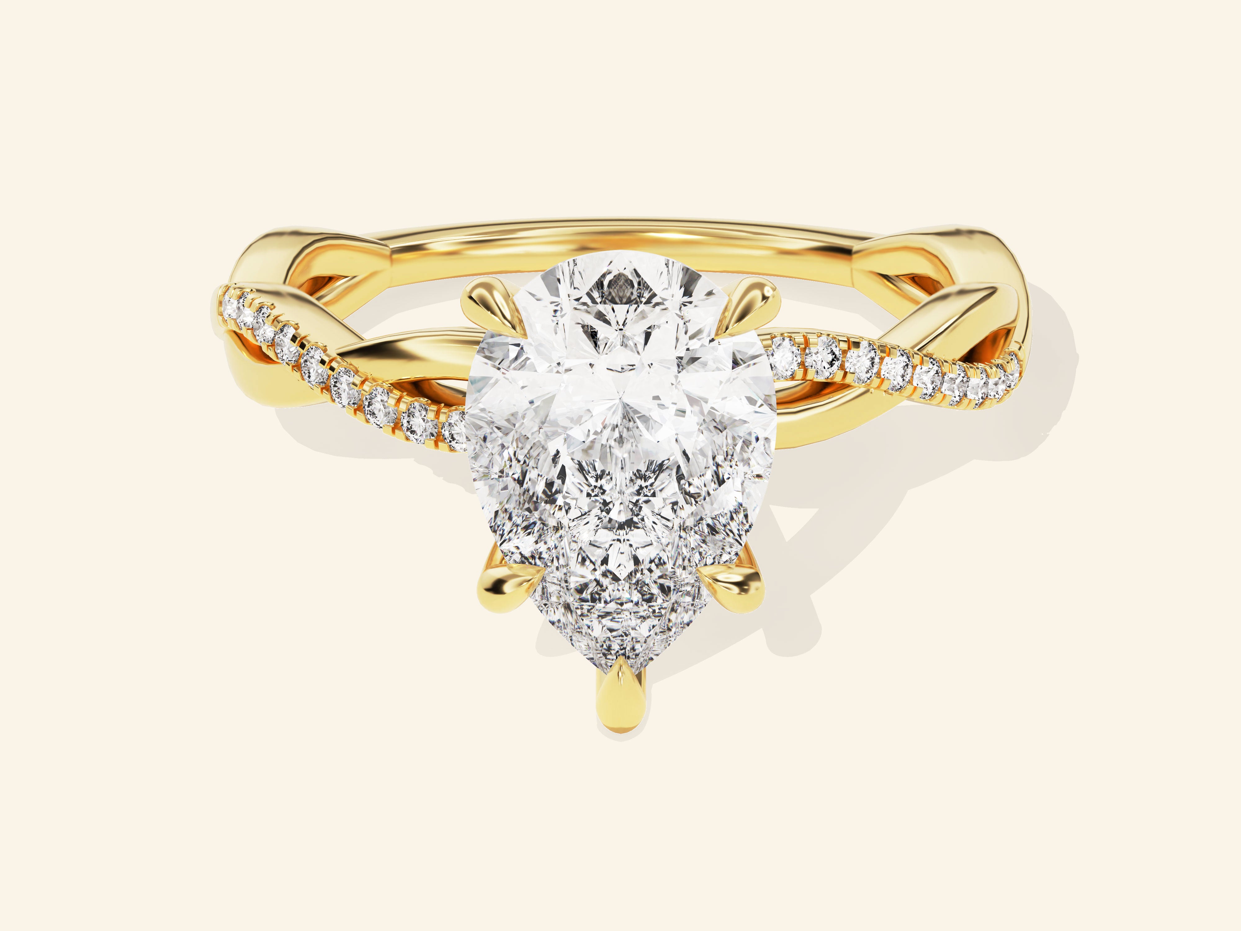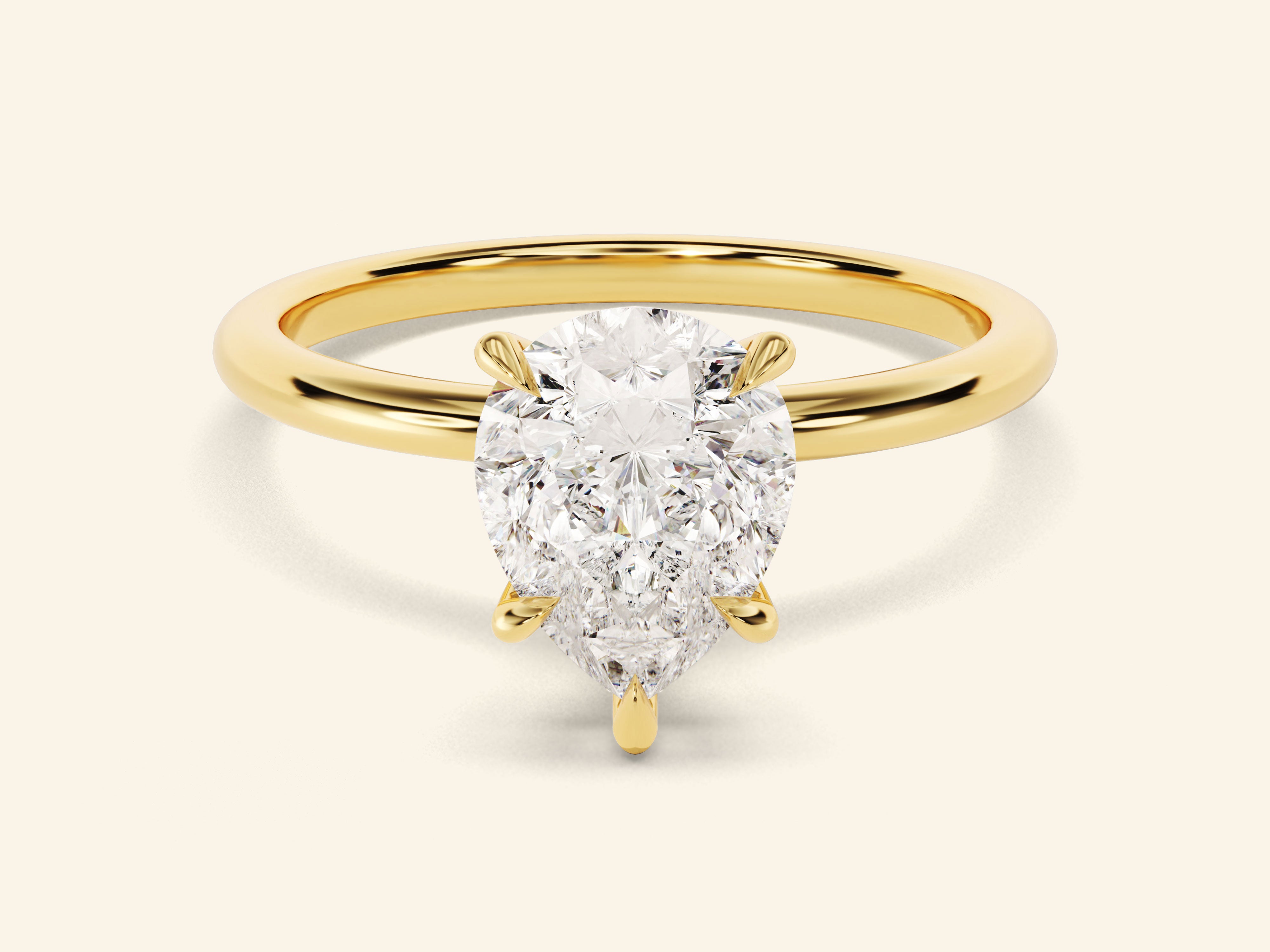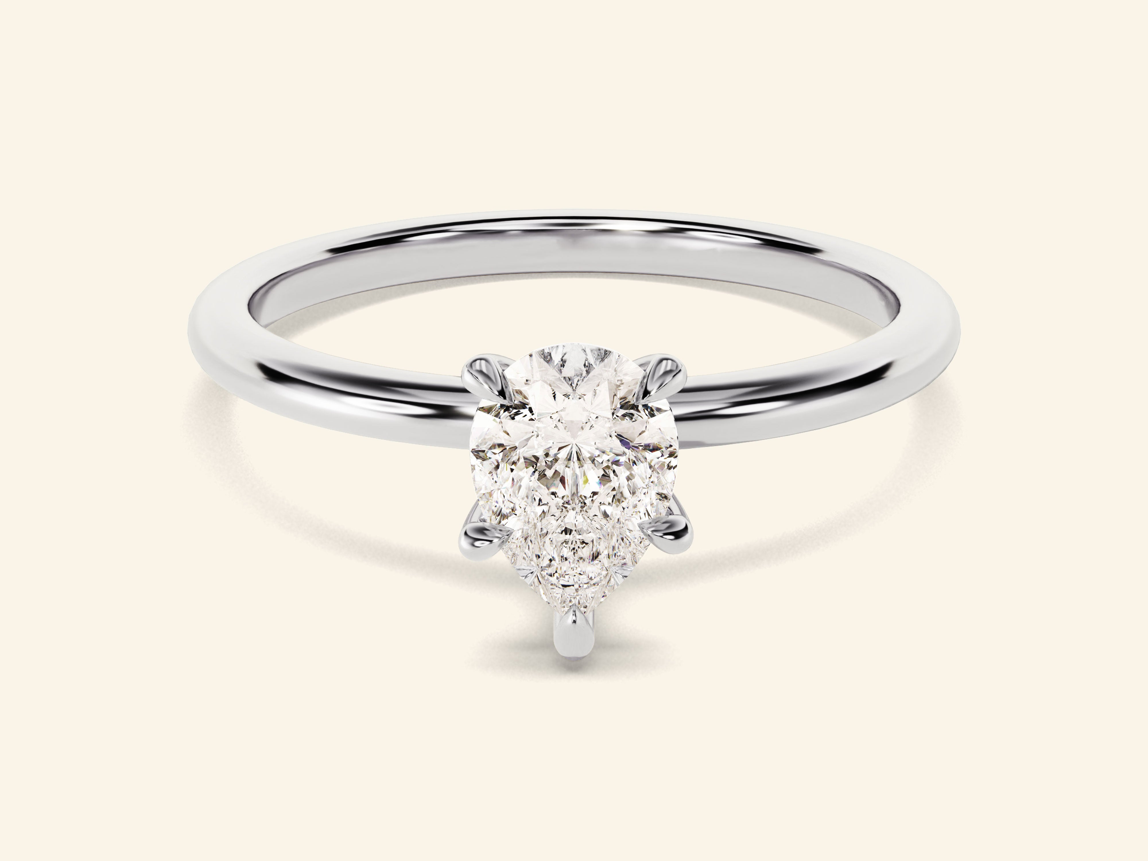 Pear shaped diamonds stand out from the rest with their teardrop silhouette that’s pointed at the top, rounded at the bottom. They naturally elongate the finger, giving a graceful look that feels both elegant and modern. No matter how you choose to wear it, with the point up or down, this shape has a way of making any ring design pop. Explore our designs to find the pear cut that always gets a second glance.