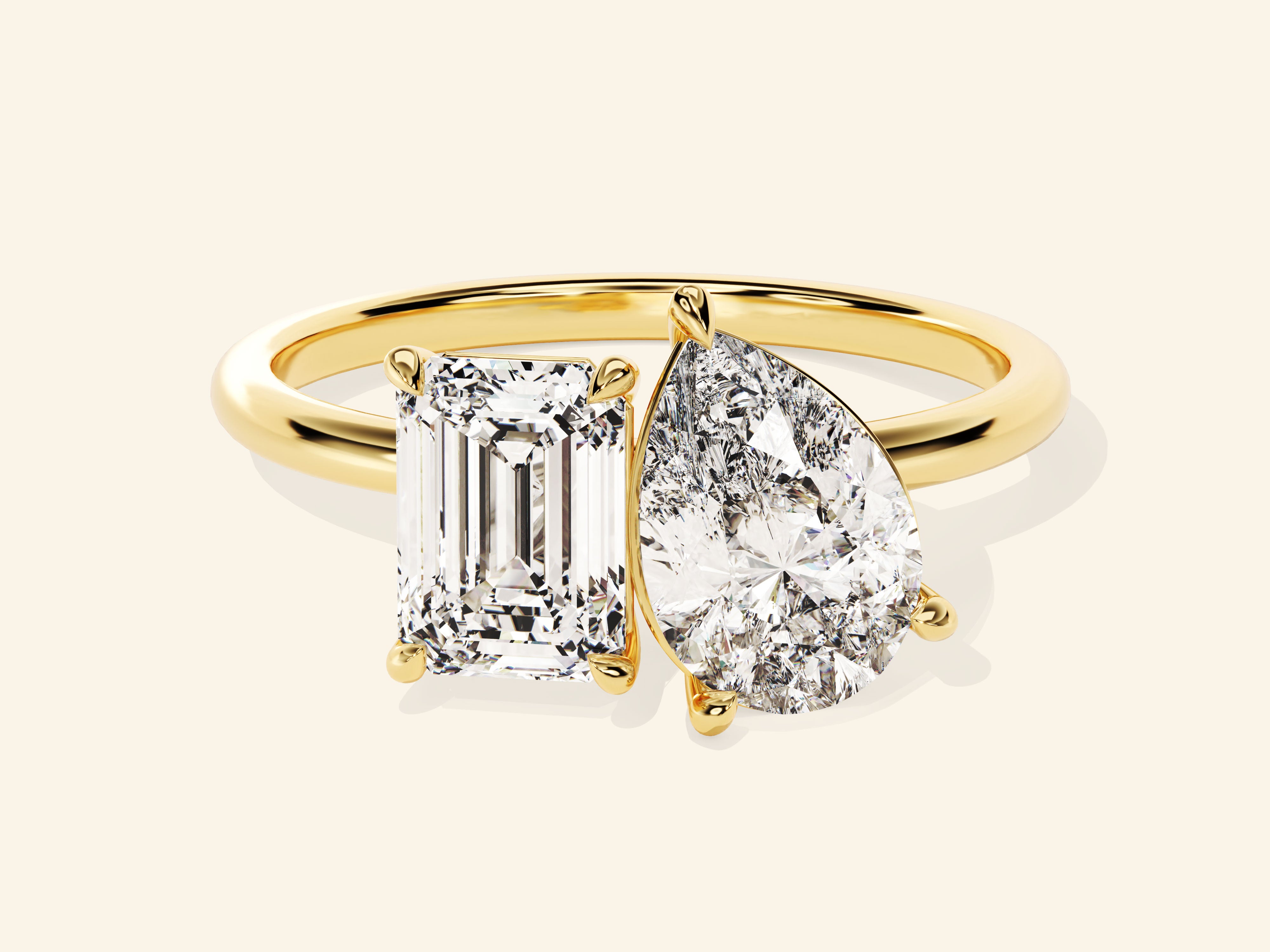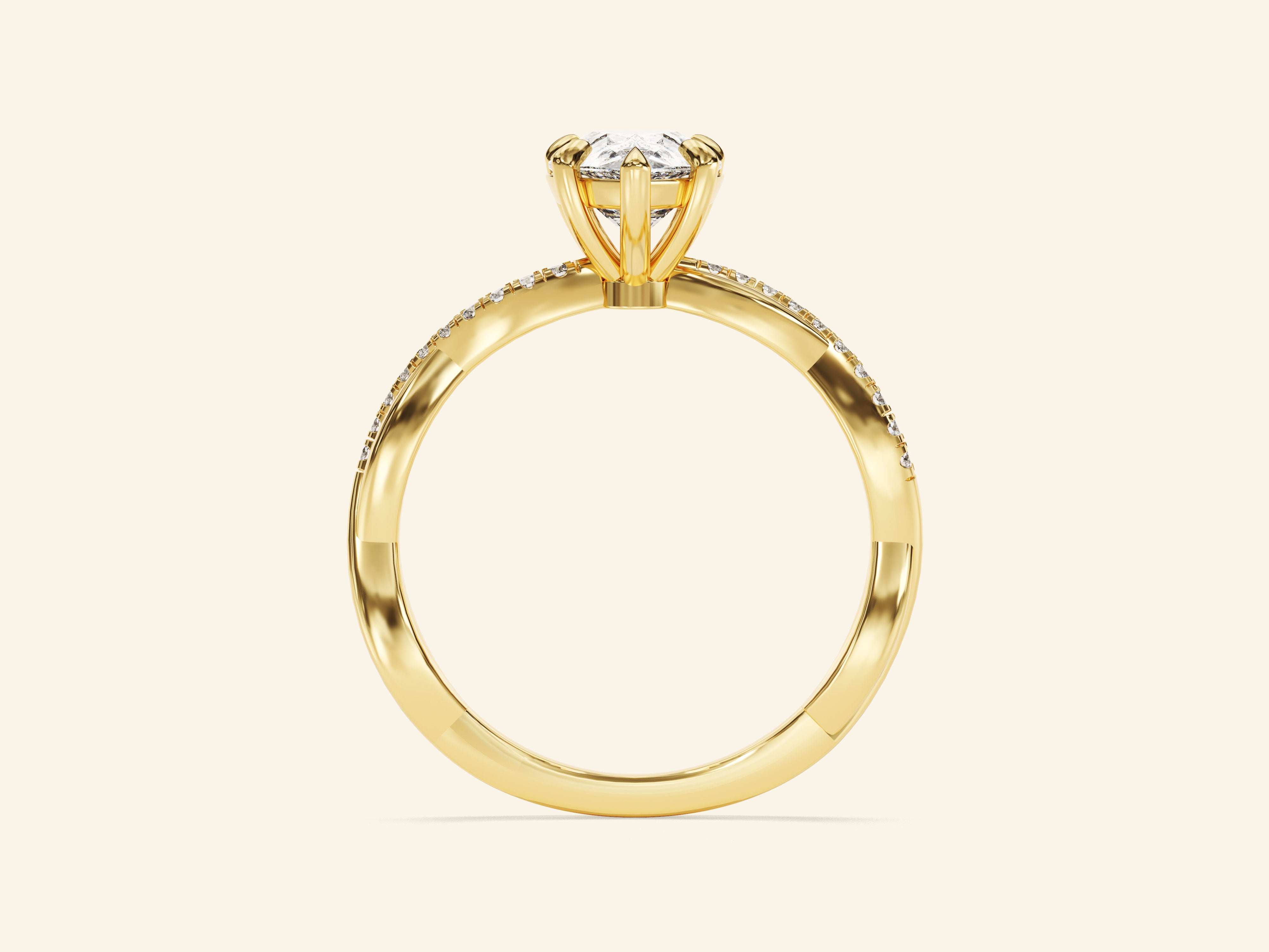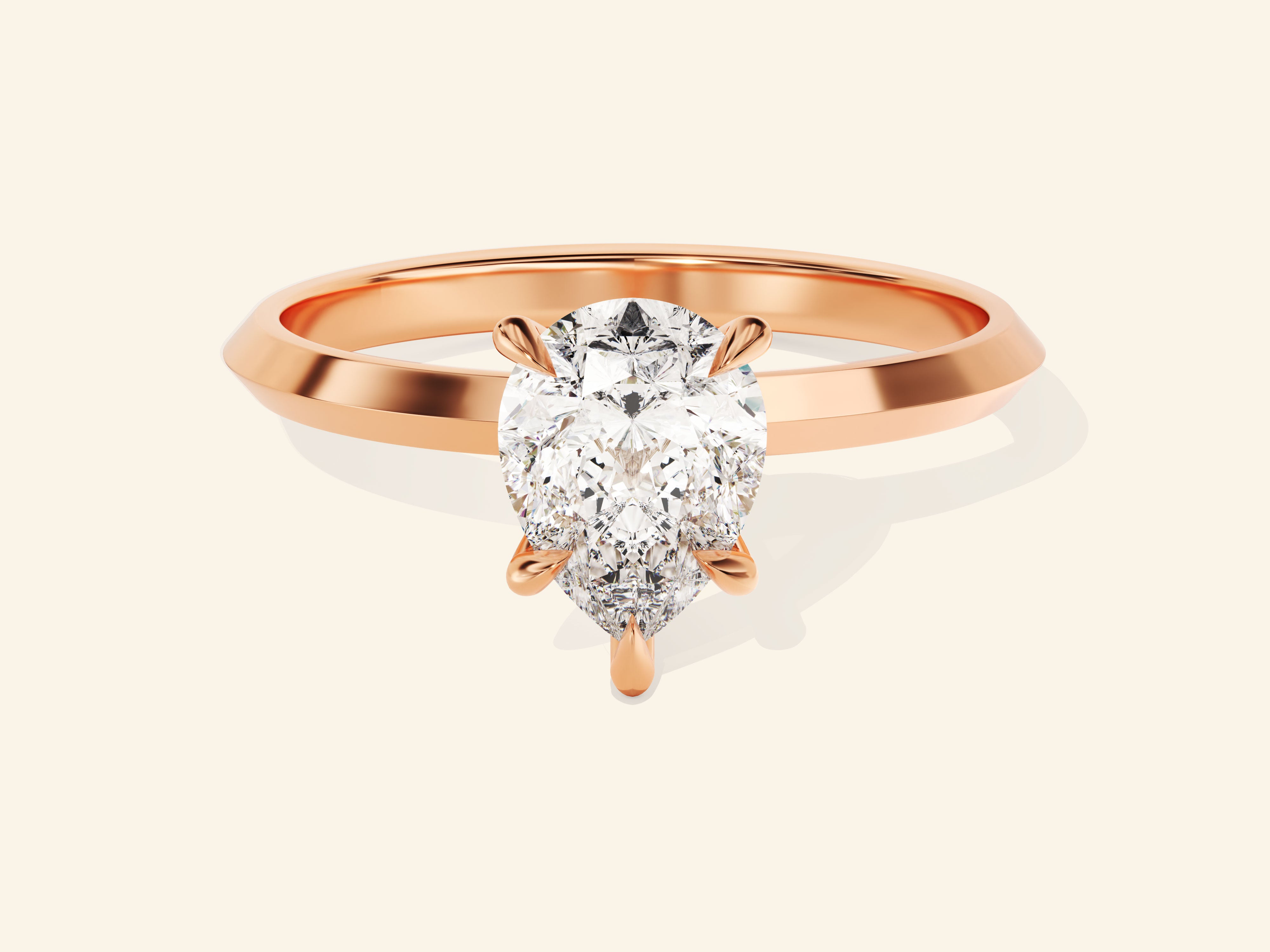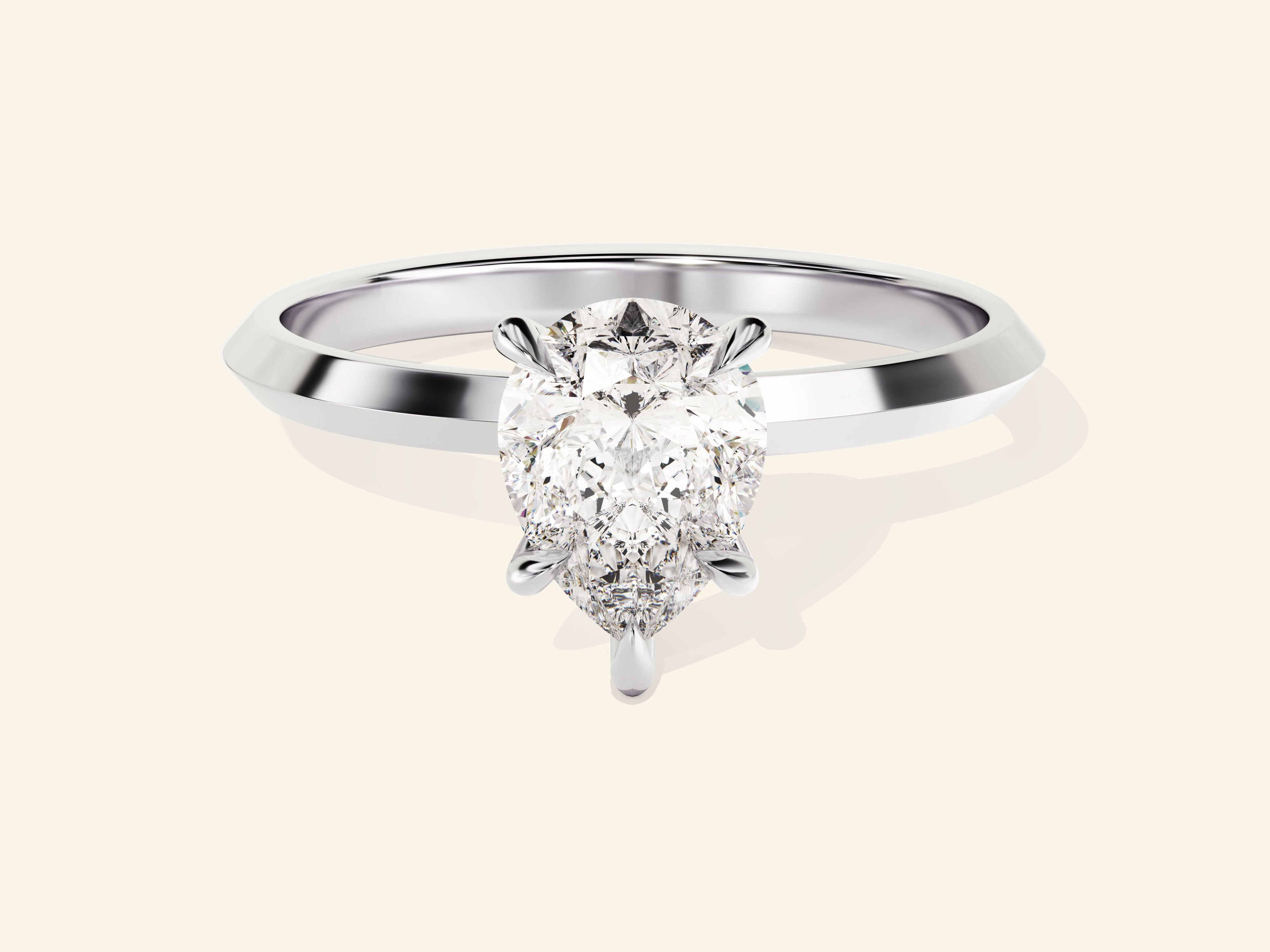 Pear shaped diamonds stand out from the rest with their teardrop silhouette that’s pointed at the top, rounded at the bottom. They naturally elongate the finger, giving a graceful look that feels both elegant and modern. No matter how you choose to wear it, with the point up or down, this shape has a way of making any ring design pop. Explore our designs to find the pear cut that always gets a second glance.