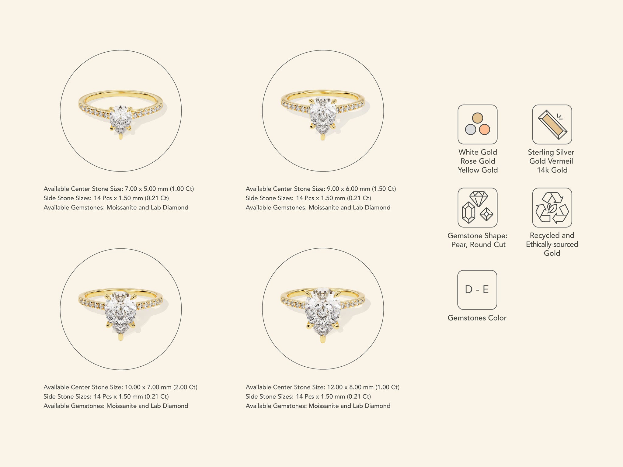 An enduring expression of elegance, this Pear Cut Engagement Ring with Pave Set Side Stones is crafted with care in 14k solid gold, gold vermeil, or sterling silver. Its brilliant 1.50 carat pear-cut stone sits on a slim, refined band, designed to shine with the quiet confidence of lab grown diamond or moissanite stone in every moment. Whether given as a symbol of love, a celebration of a milestone, or simply a piece to cherish every day, this ring offers lasting beauty and meaning.