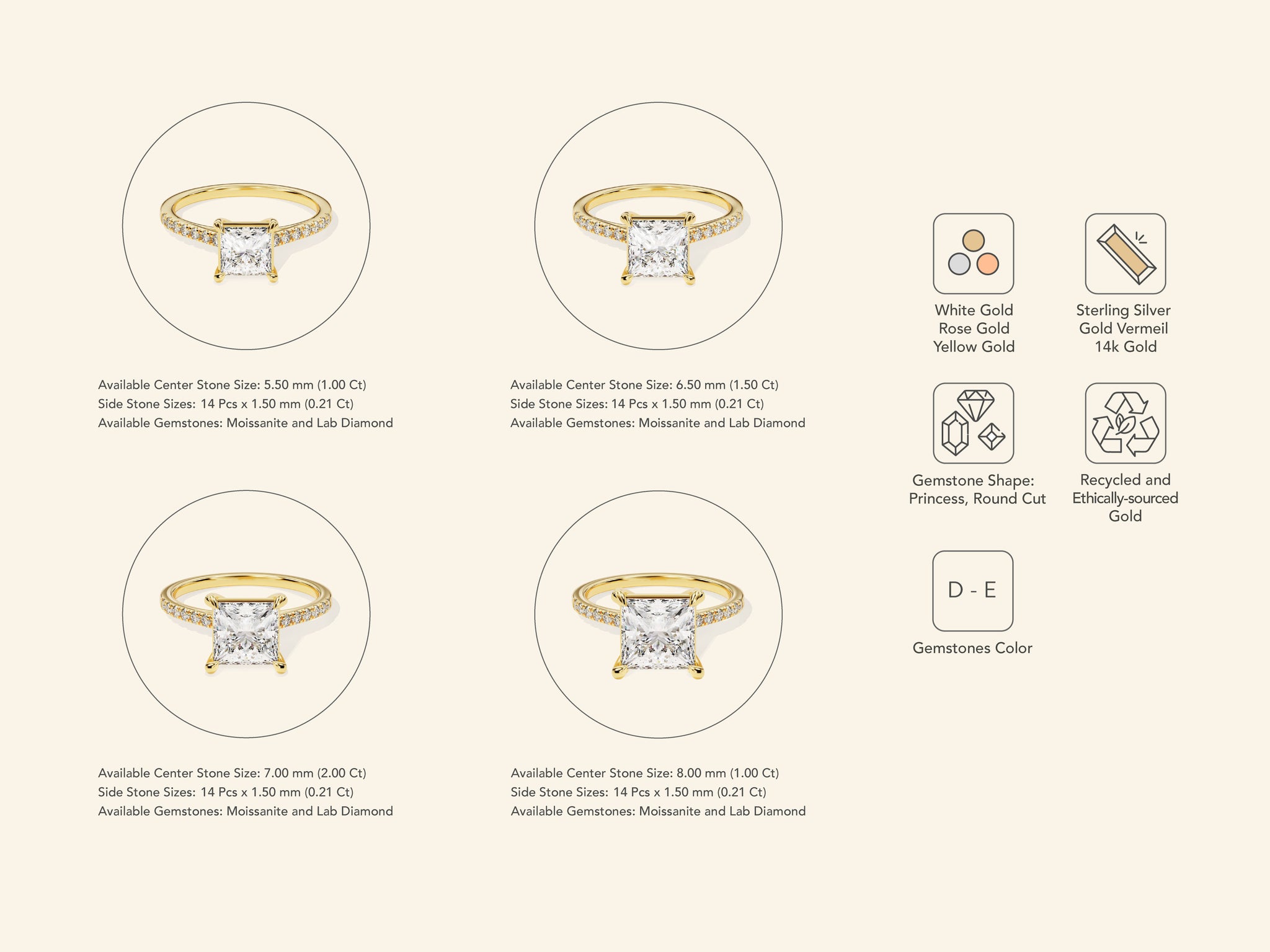 An enduring expression of elegance, this Princess Cut Engagement Ring with Pave Set Side Stones is crafted with care in 14k solid gold, gold vermeil, or sterling silver. Its brilliant 3 carat princess-cut stone sits on a slim, refined band, designed to shine with the quiet confidence of lab grown diamond or moissanite stone in every moment. Whether given as a symbol of love, a celebration of a milestone, or simply a piece to cherish every day, this ring offers lasting beauty and meaning.
