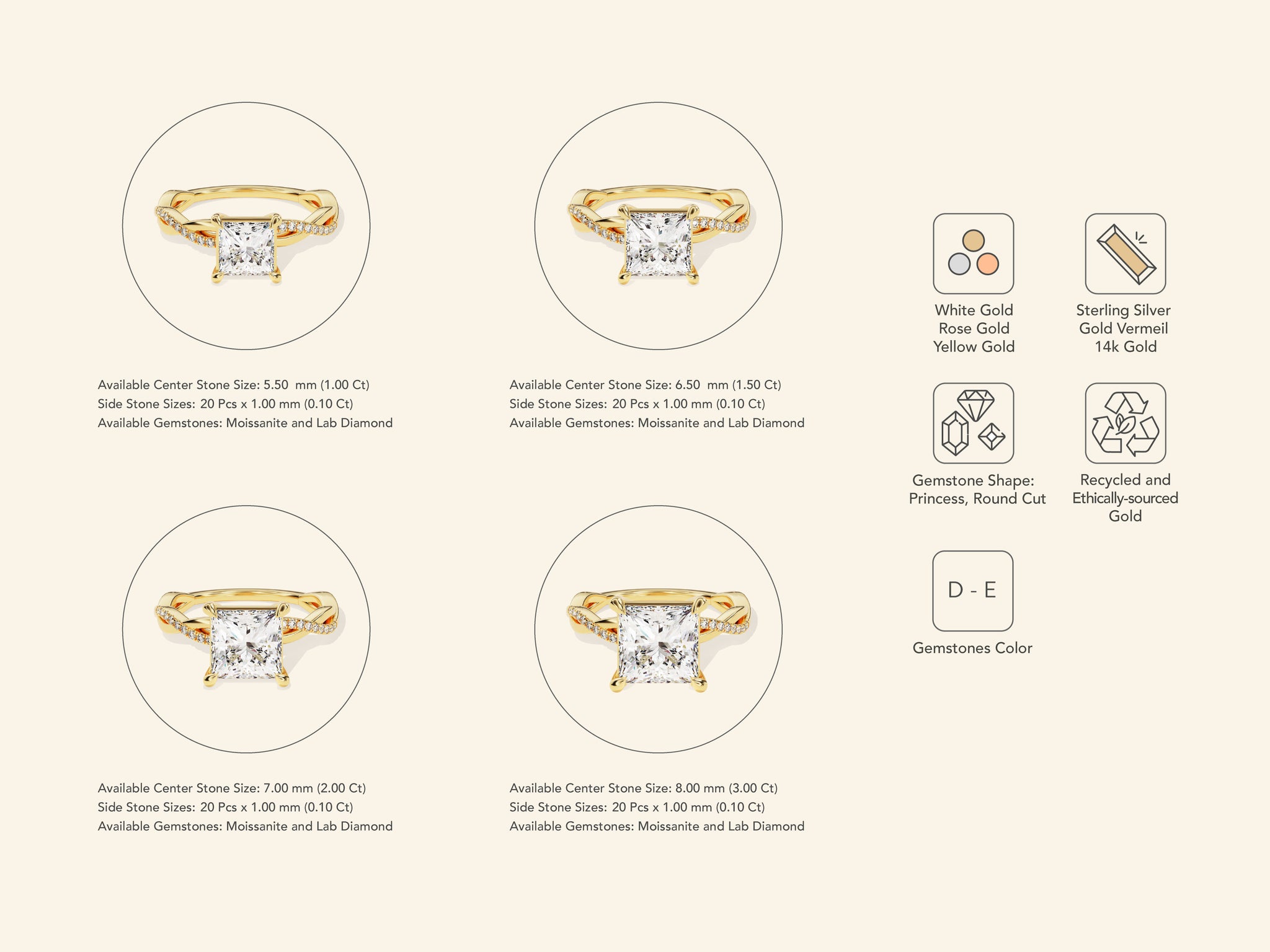 An enduring expression of elegance, this Princess Twisted Engagement Ring is crafted with care in 14k solid gold, gold vermeil, or sterling silver. Its brilliant 1 carat princess-cut stone sits on a slim, refined band, designed to shine with the quiet confidence of lab grown diamond or moissanite stone in every moment. Whether given as a symbol of love, a celebration of a milestone, or simply a piece to cherish every day, this ring offers lasting beauty and meaning.