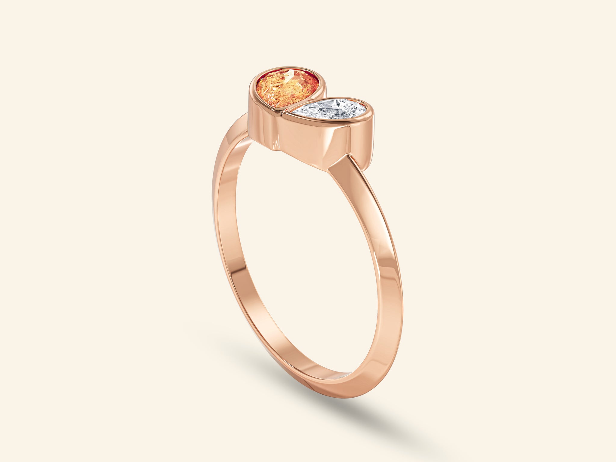 A unique take on the classic “you and me” design, this ring pairs two bezel-set stones arranged together in perfect harmony. A modern symbol of two souls meeting as one.