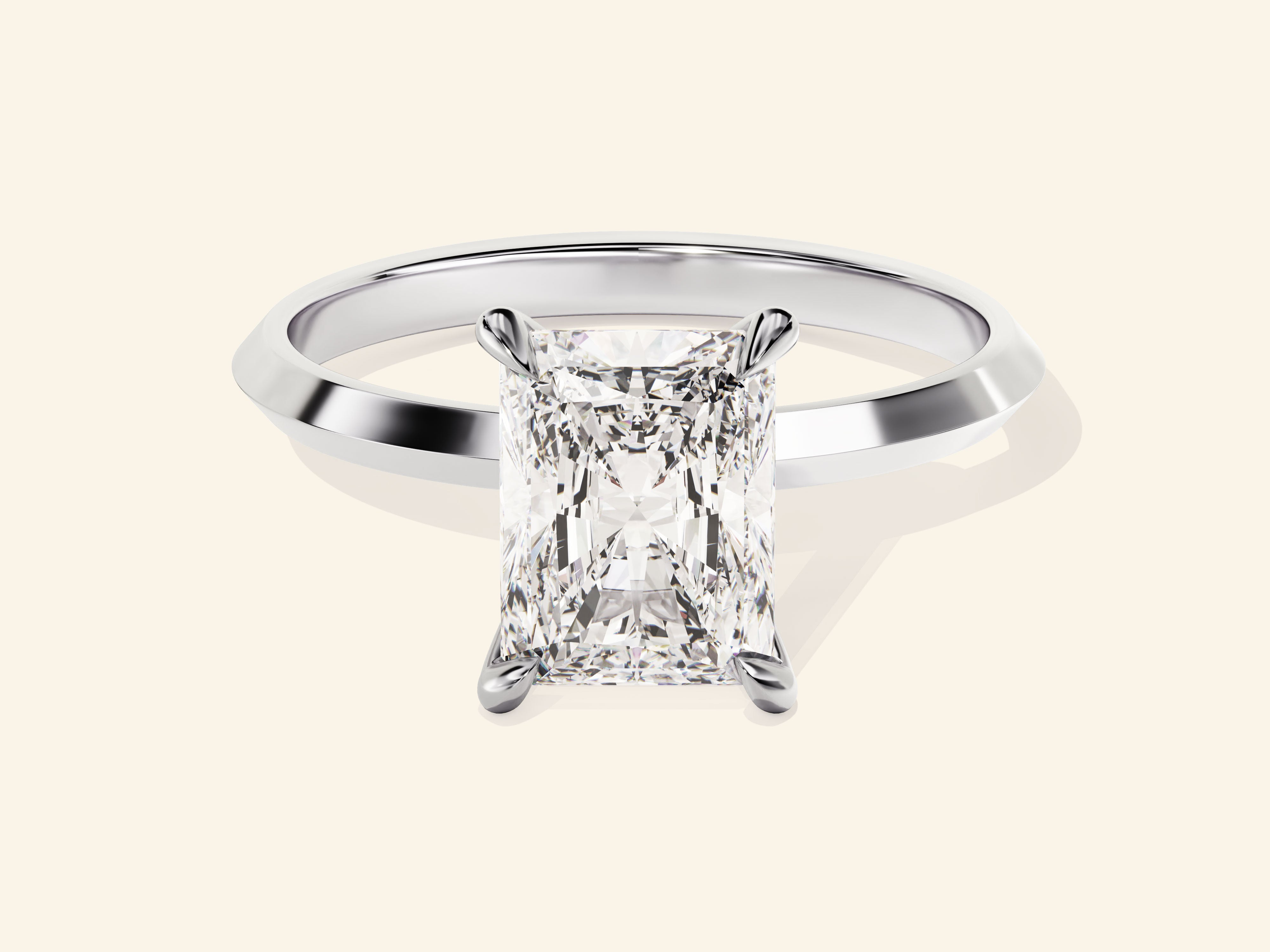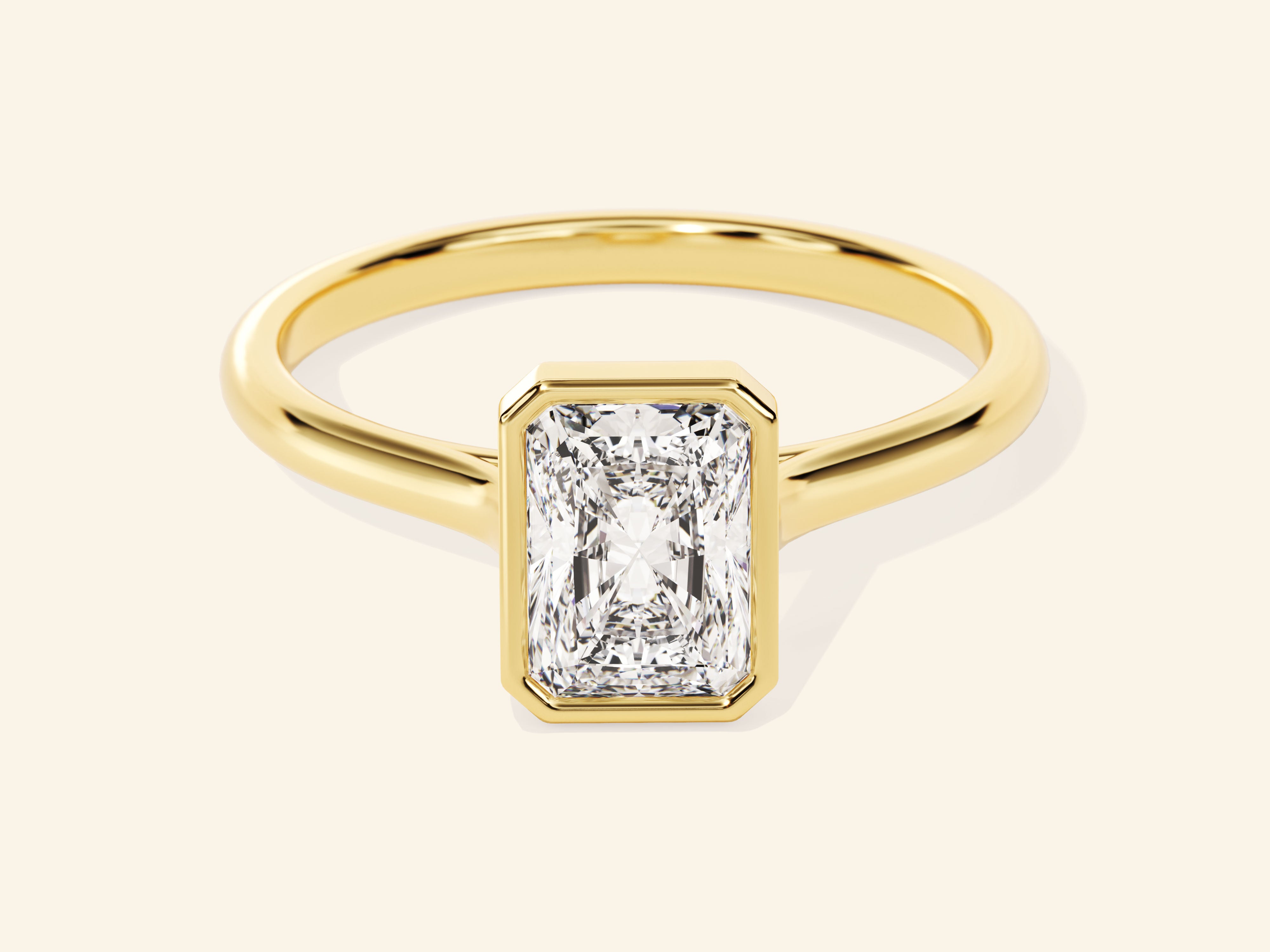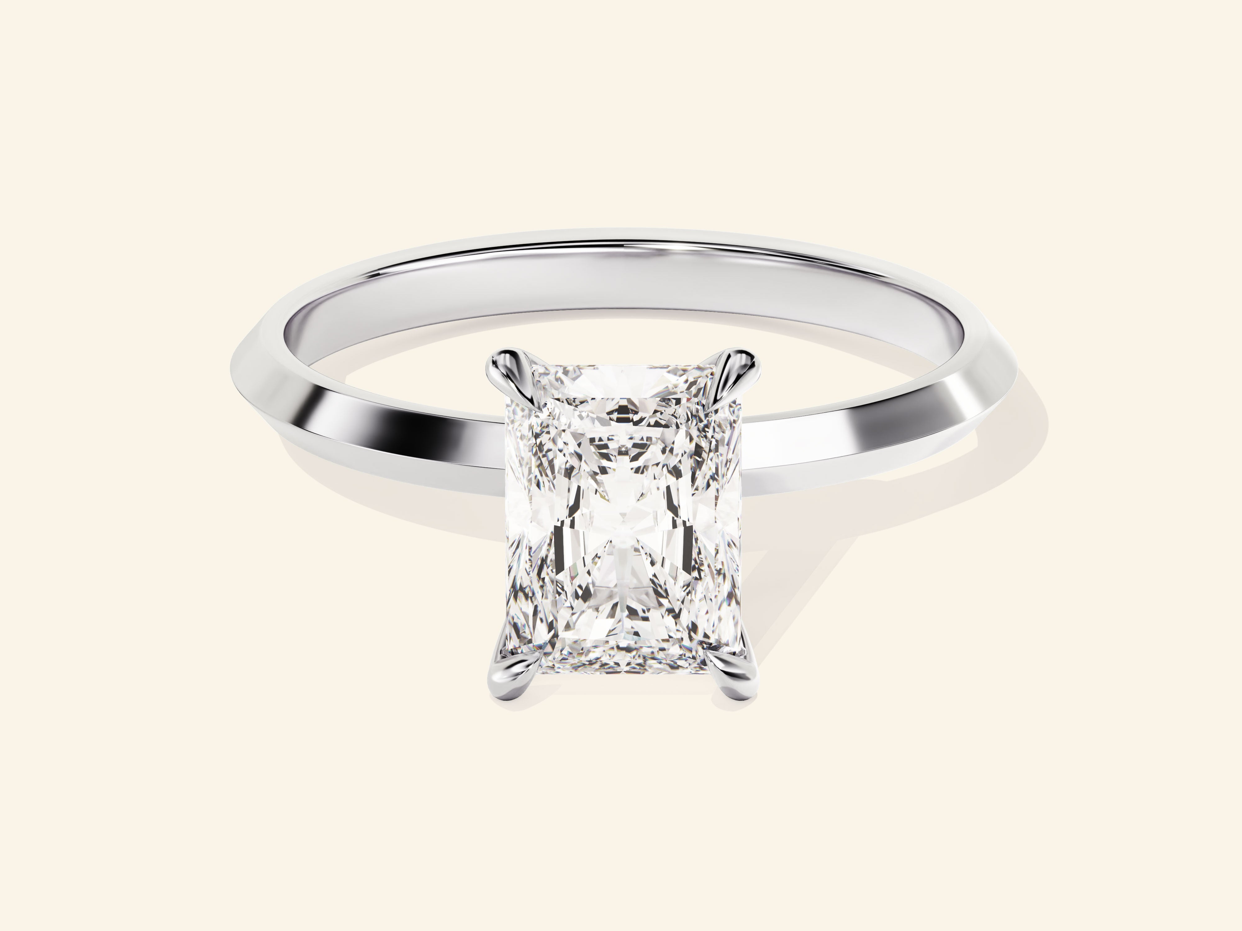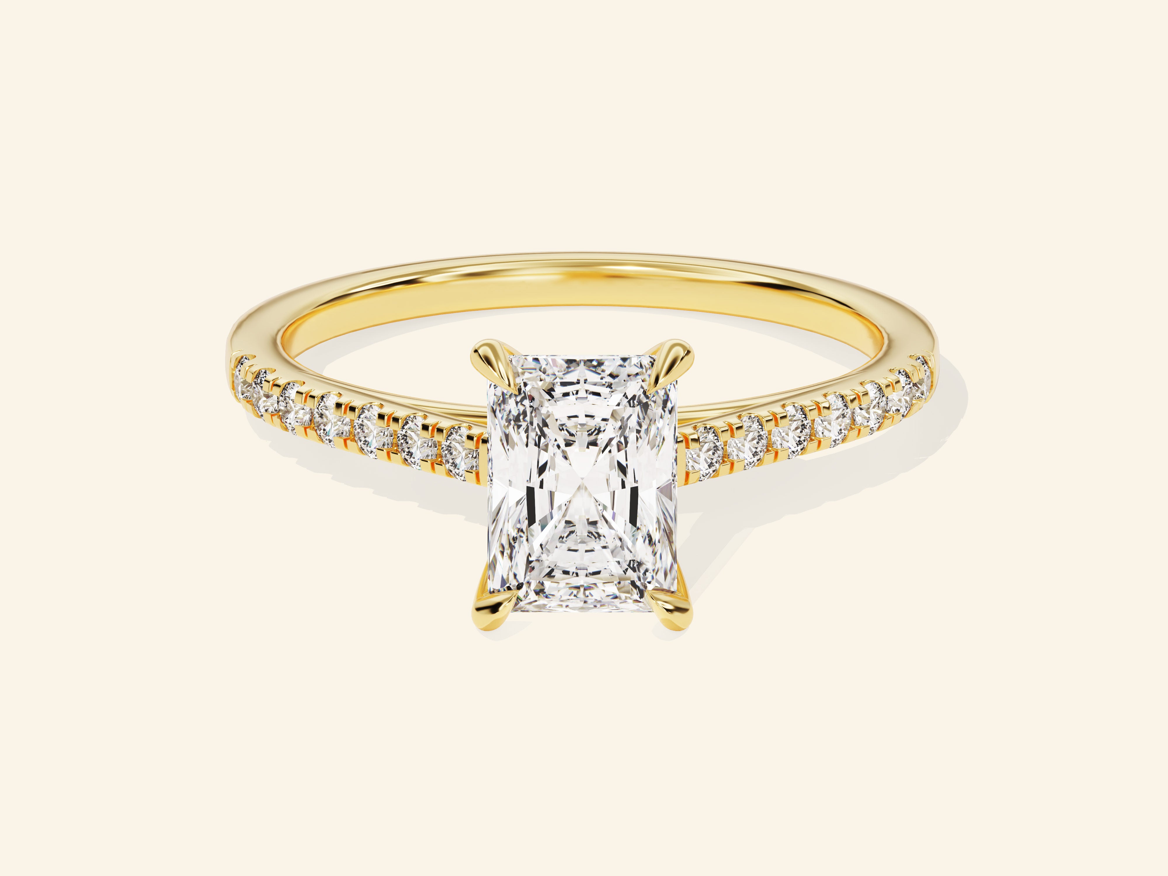 The radiant cut offers a lovely sparkle in a smart design. This cut mixes the clean, straight edges of a square or rectangle with a ton of tiny facets, so it catches the light in a way that feels alive. Its precisely cut facets create a fire and brilliance that makes the stone stand out and even look a little bigger than it is. Within our special selection of radiant rings, find the one that catches your eye, and let it do the sparkling for you.