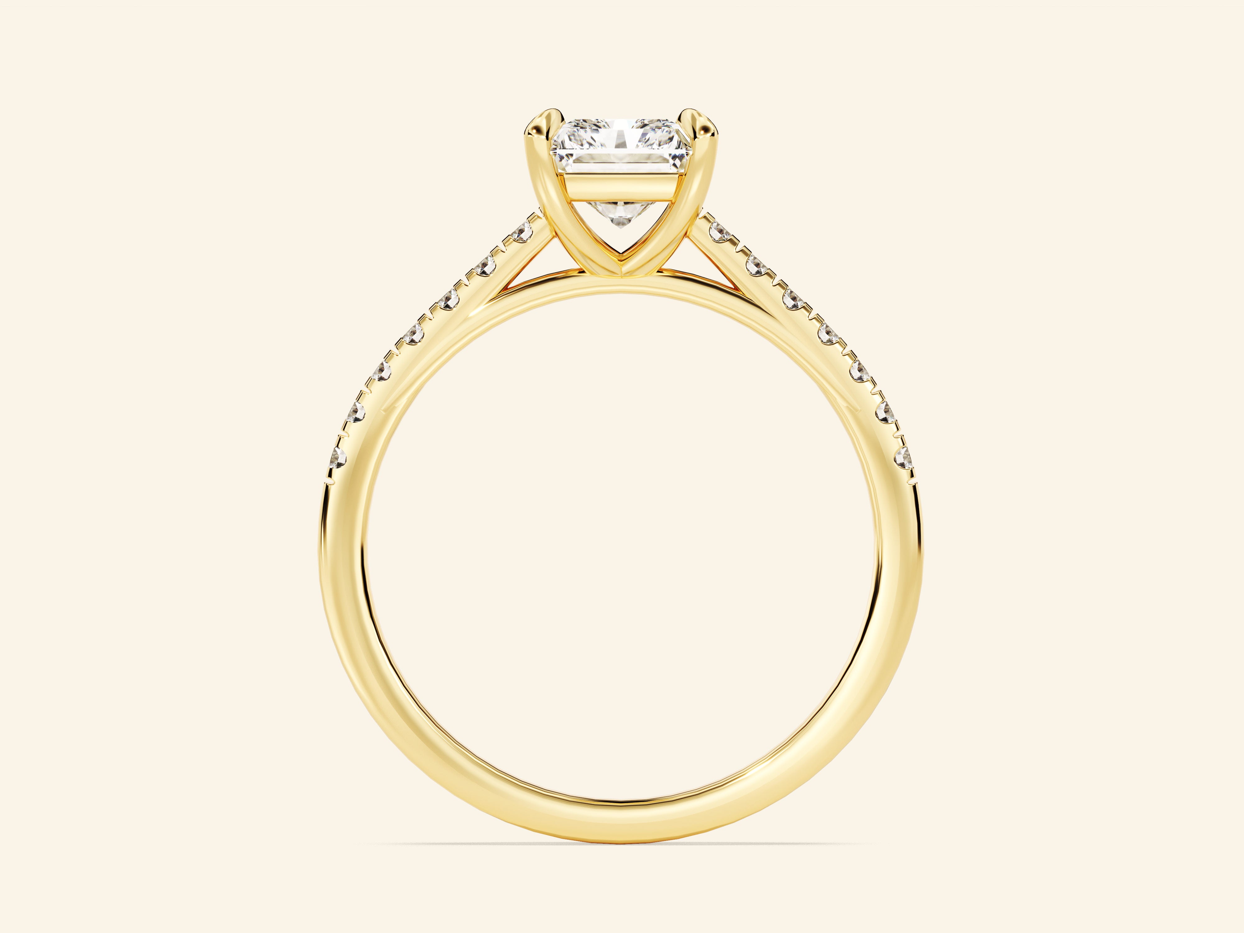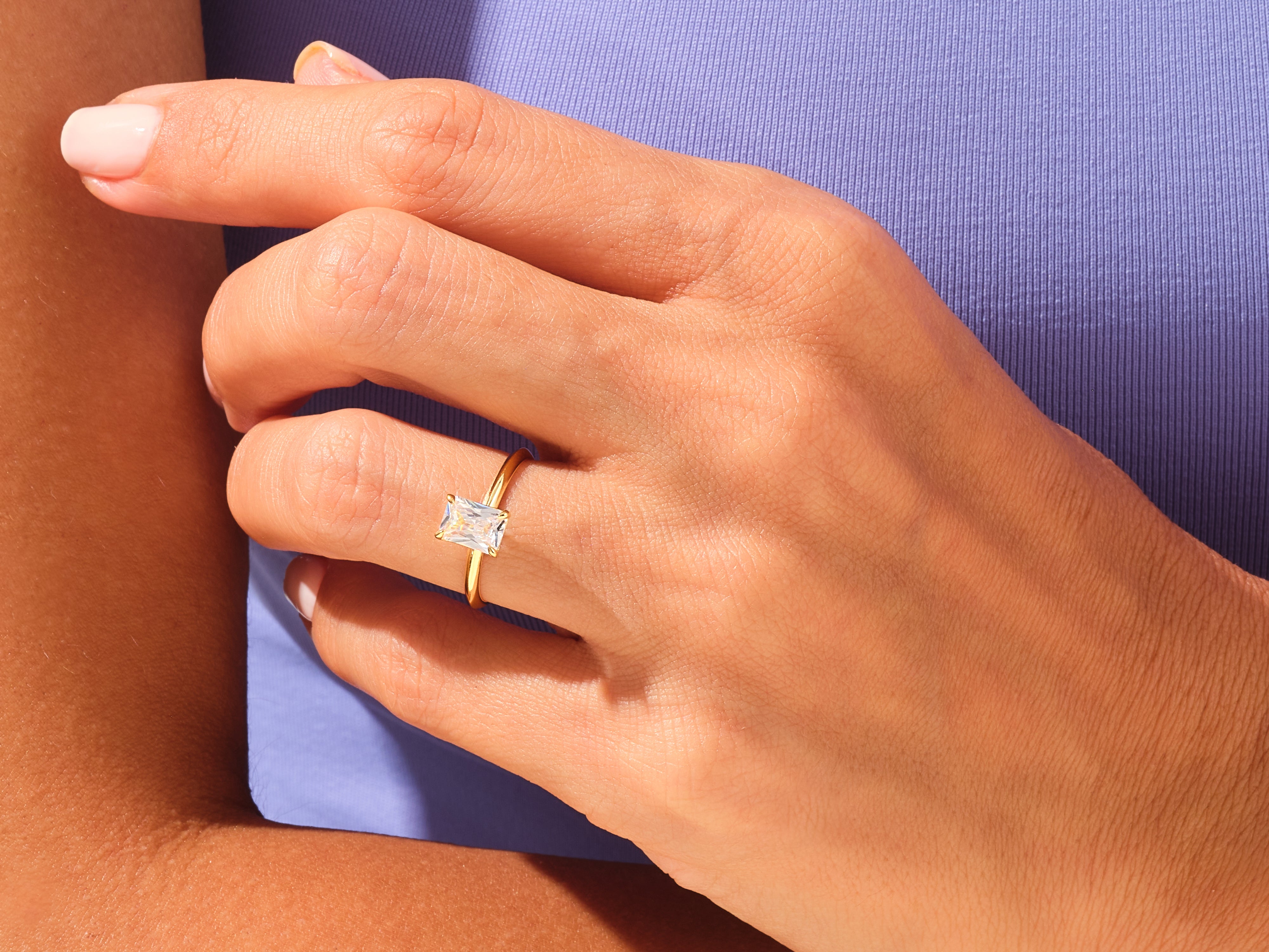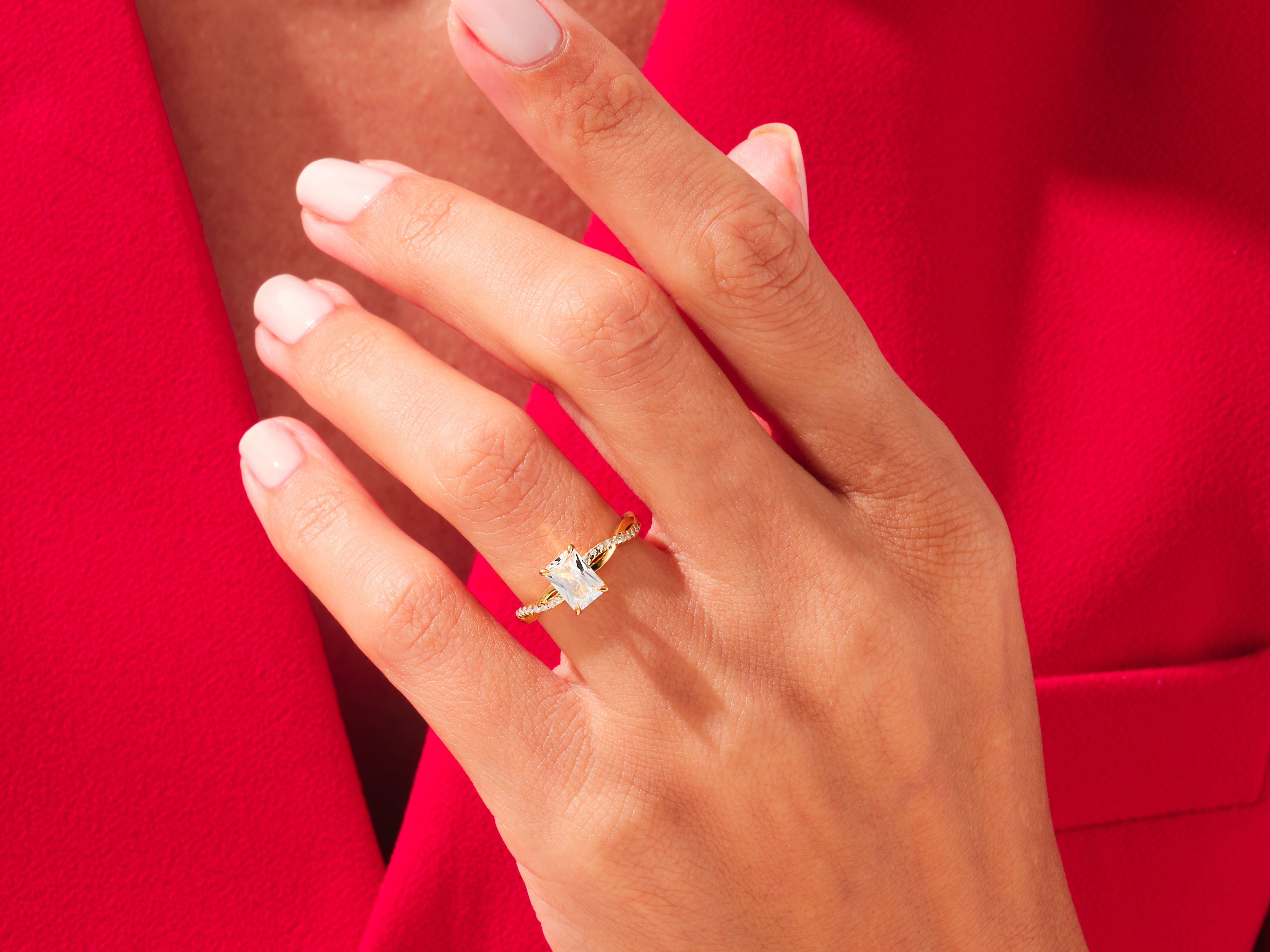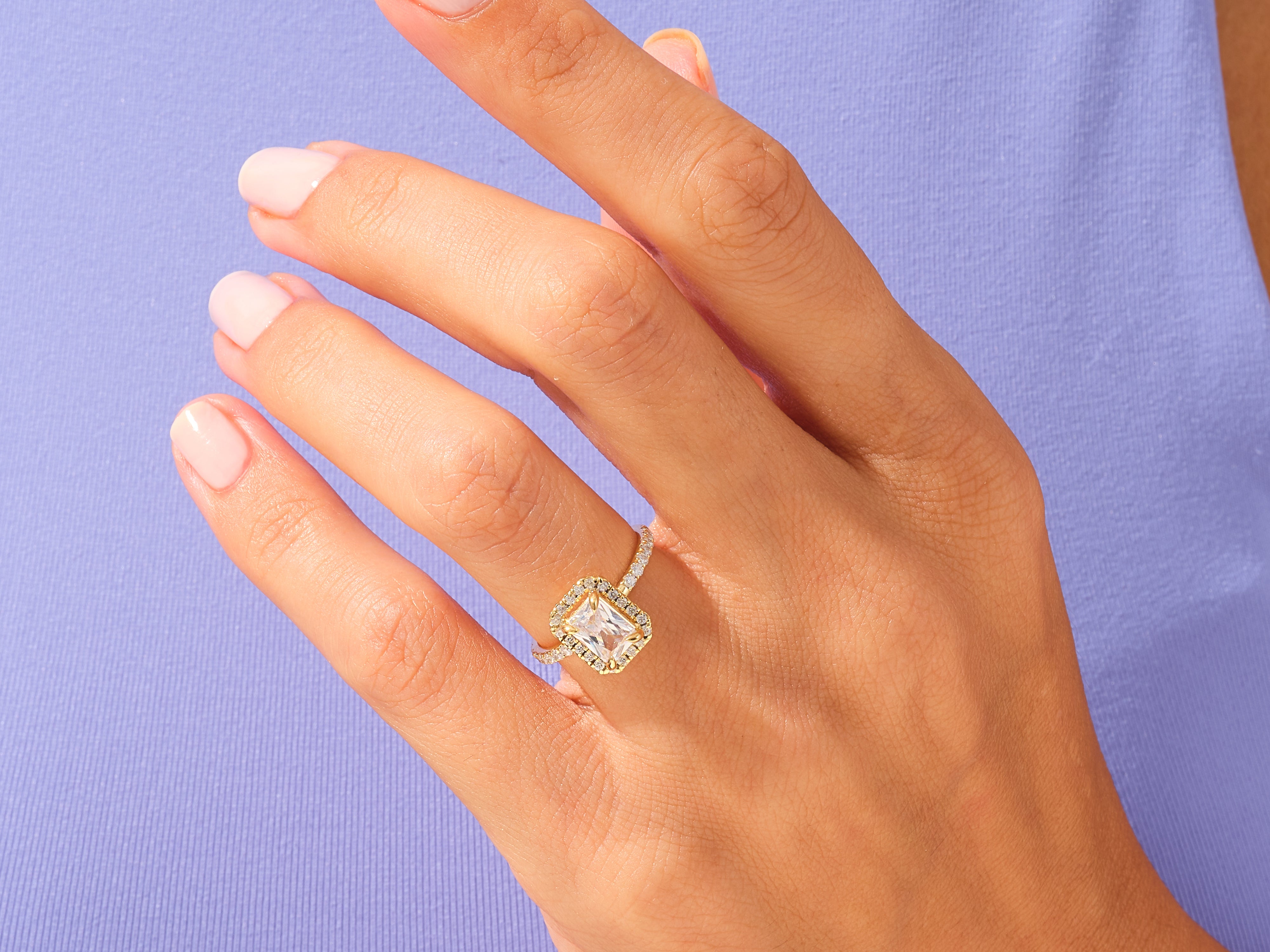 The radiant cut offers a lovely sparkle in a smart design. This cut mixes the clean, straight edges of a square or rectangle with a ton of tiny facets, so it catches the light in a way that feels alive. Its precisely cut facets create a fire and brilliance that makes the stone stand out and even look a little bigger than it is. Within our special selection of radiant rings, find the one that catches your eye, and let it do the sparkling for you.