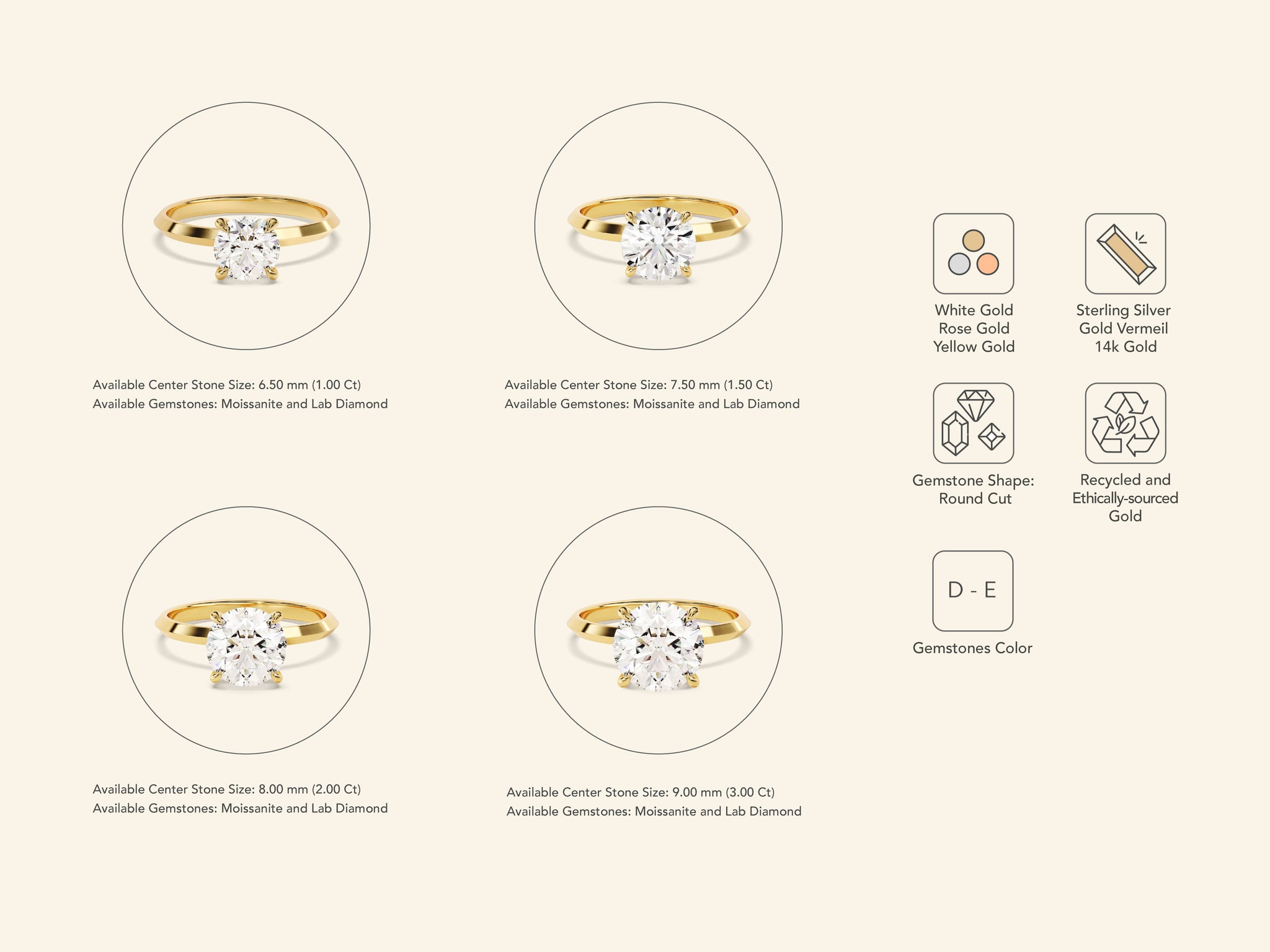 An enduring expression of elegance, this Knife Edge Round Engagement Ring is crafted with care in 14k solid gold, gold vermeil, or sterling silver. Its brilliant 1 carat round-cut stone sits on a slim, refined band, designed to shine with the quiet confidence of lab grown diamond or moissanite stone in every moment. Whether given as a symbol of love, a celebration of a milestone, or simply a piece to cherish every day, this ring offers lasting beauty and meaning.