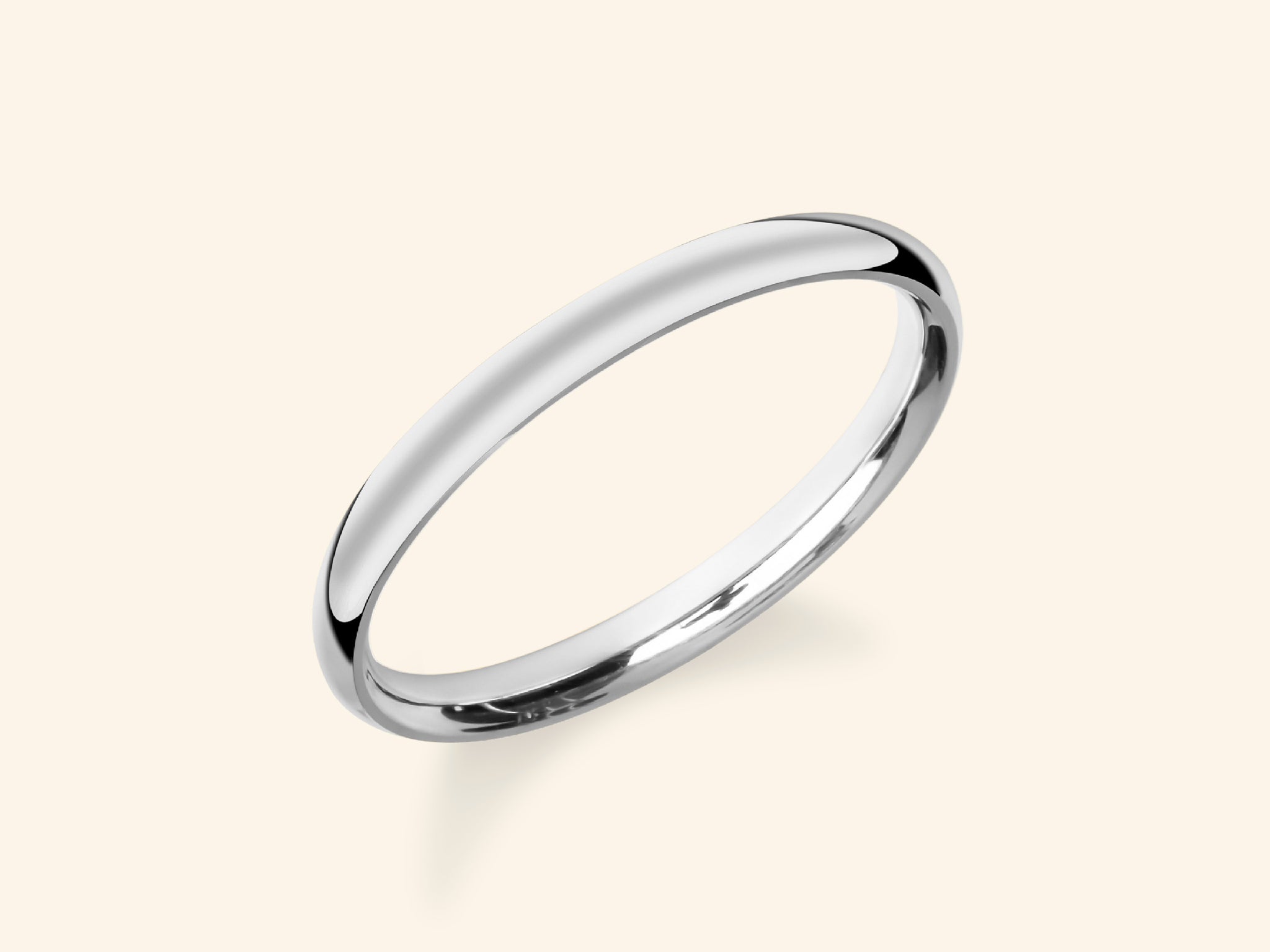 Featuring a smooth, rounded dome profile with a high-polish finish, this band exudes classic elegance. Timeless, versatile, and comfortable, it’s perfect for a sophisticated everyday look.