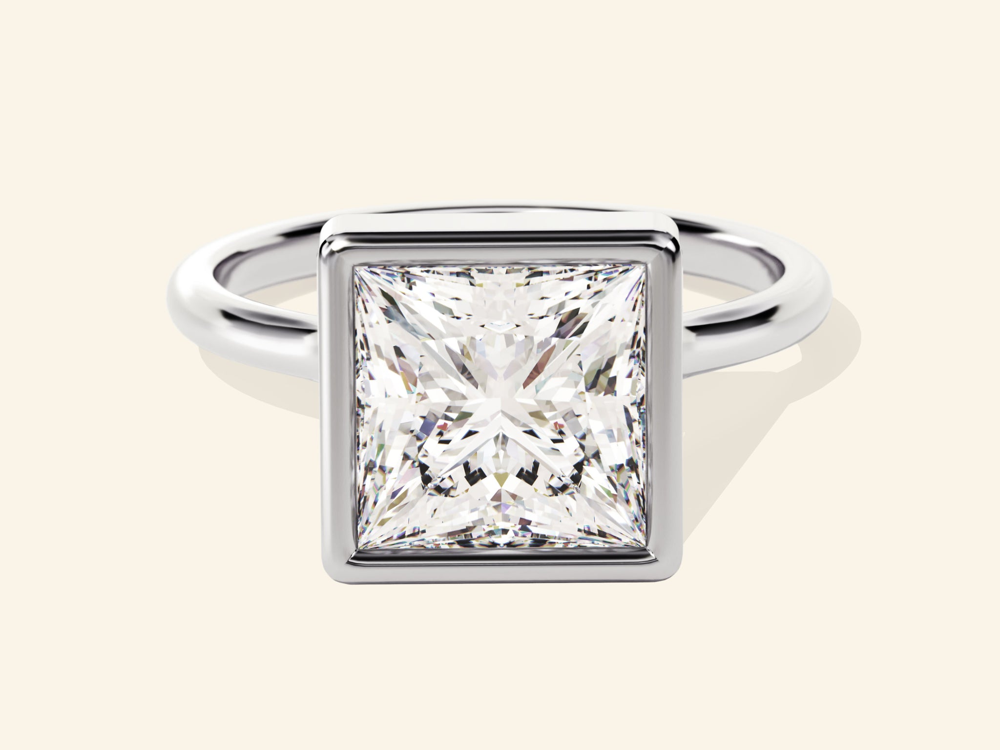 An enduring expression of elegance, this Bezel Princess Engagement Ring is crafted with care in 14k solid gold, gold vermeil, or sterling silver. Its brilliant 3 carat princess-cut stone sits on a slim, refined band, designed to shine with the quiet confidence of lab grown diamond or moissanite stone in every moment. Whether given as a symbol of love, a celebration of a milestone, or simply a piece to cherish every day, this ring offers lasting beauty and meaning.