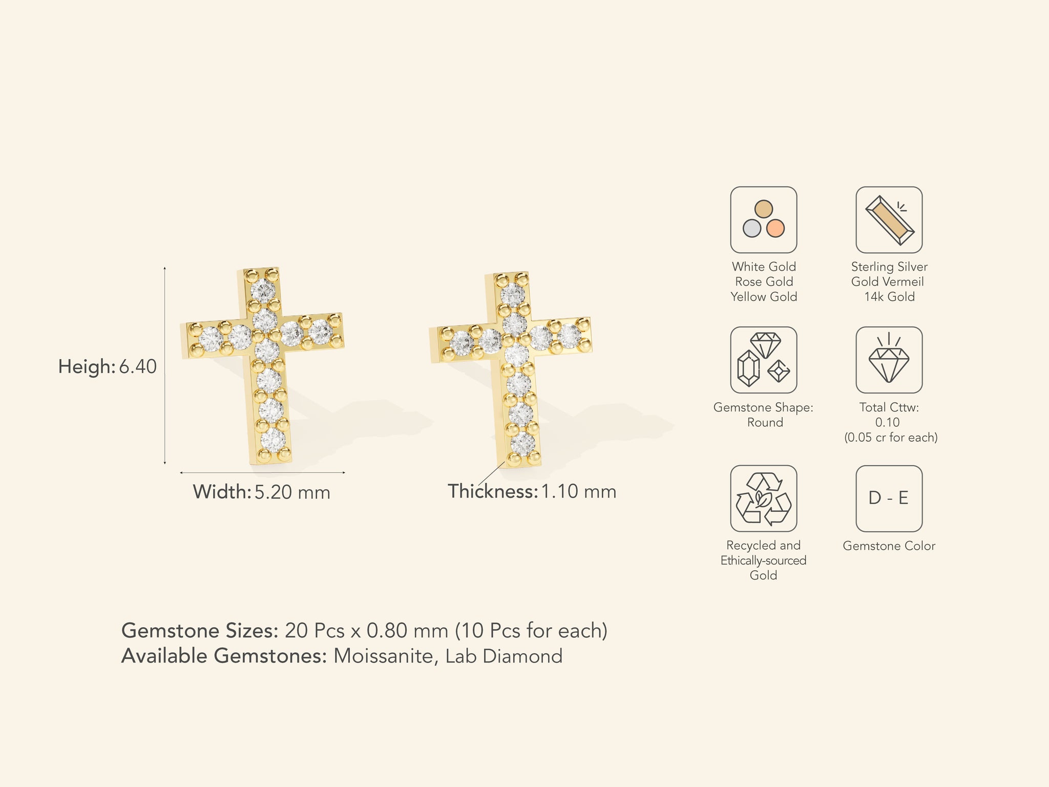 Light-catching and effortlessly versatile, the Cross Earrings are designed to move with you. Crafted in 14k solid gold, gold vermeil, or sterling silver, they feature a luminous stones that adds just the right amount of shine. Choose from lab grown diamond or moissanite for personalized touch. Subtle enough for everyday, striking enough for special moments. Whether paired or worn solo, each piece brings a hint of confidence and character to your look. Made to be noticed, but never loud.