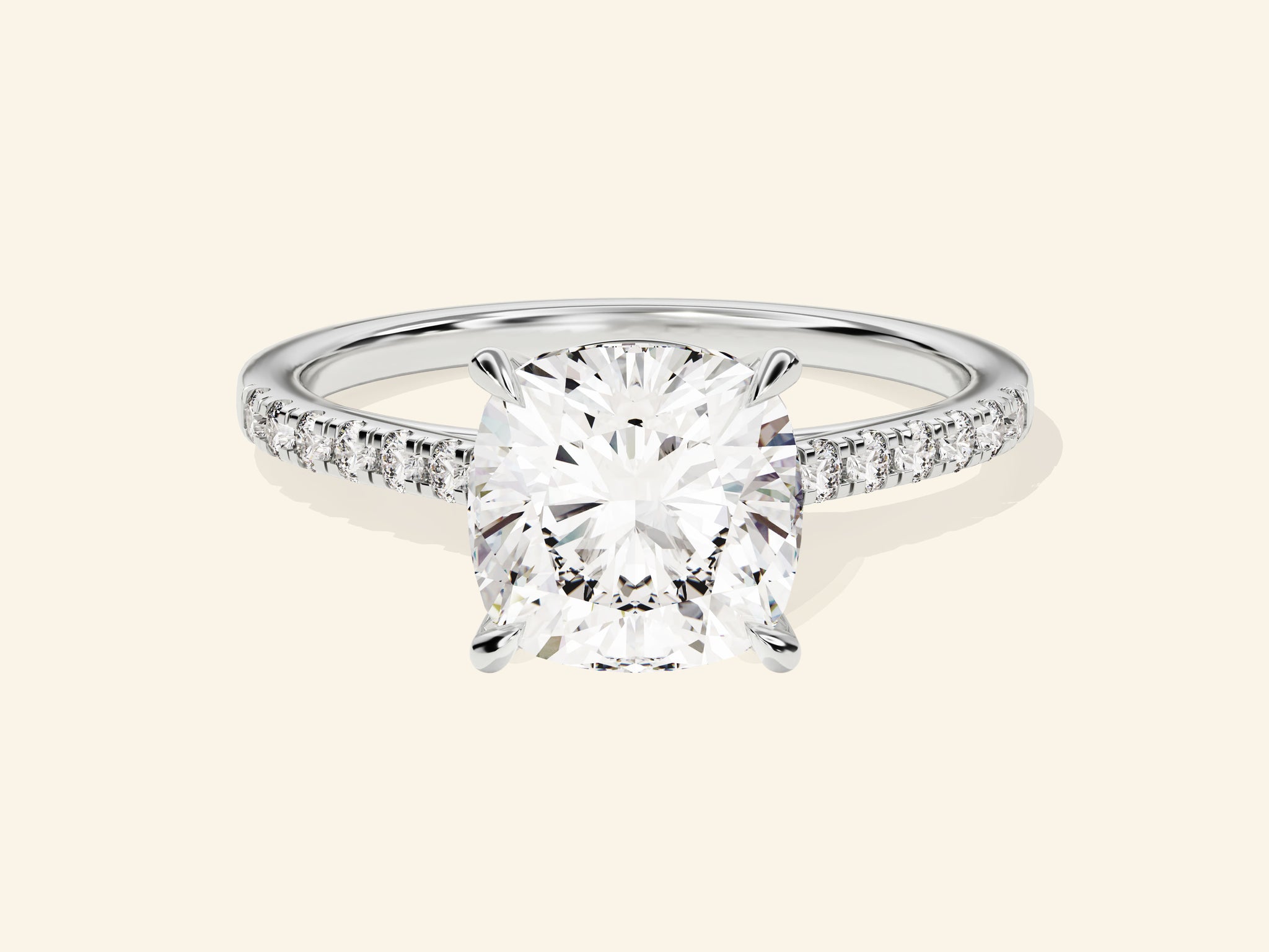 Cushion Cut Engagement Ring with Pave Set Side Stones