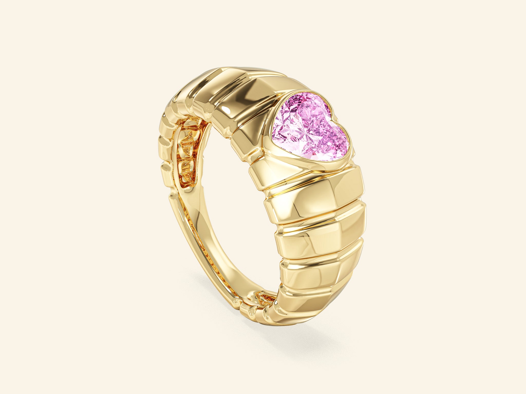 Dome Pink Heart Promise Ring featuring a delicate pink moissanite at its center, set on a smooth domed band for a soft, romantic look. Its charming heart-shaped gemstone symbolizes love and affection. Perfect for celebrating heartfelt promises and special moments.