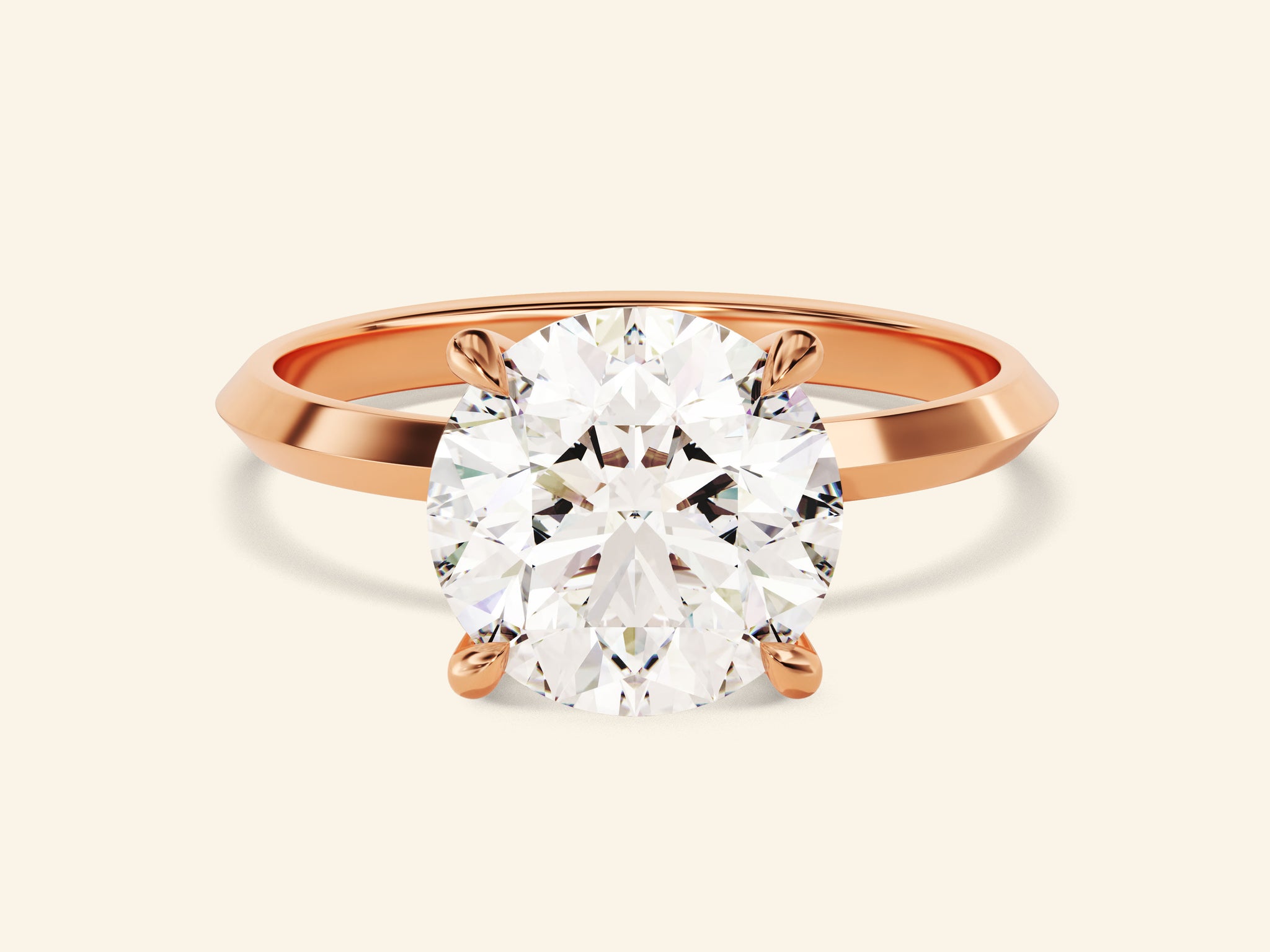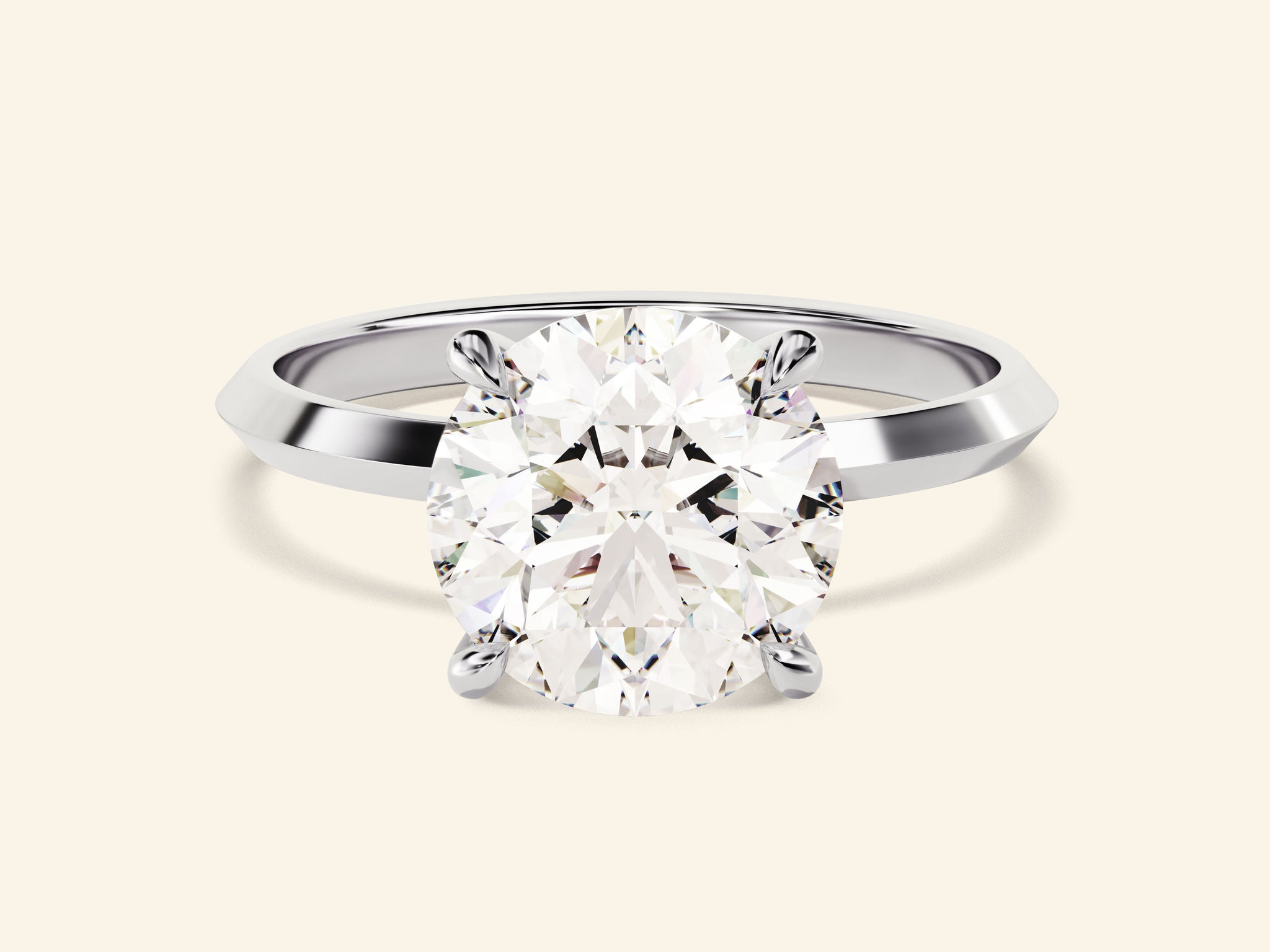 An enduring expression of elegance, this Knife Edge Round Engagement Ring is crafted with care in 14k solid gold, gold vermeil, or sterling silver. Its brilliant 3 carat round-cut stone sits on a slim, refined band, designed to shine with the quiet confidence of lab grown diamond or moissanite stone in every moment. Whether given as a symbol of love, a celebration of a milestone, or simply a piece to cherish every day, this ring offers lasting beauty and meaning.