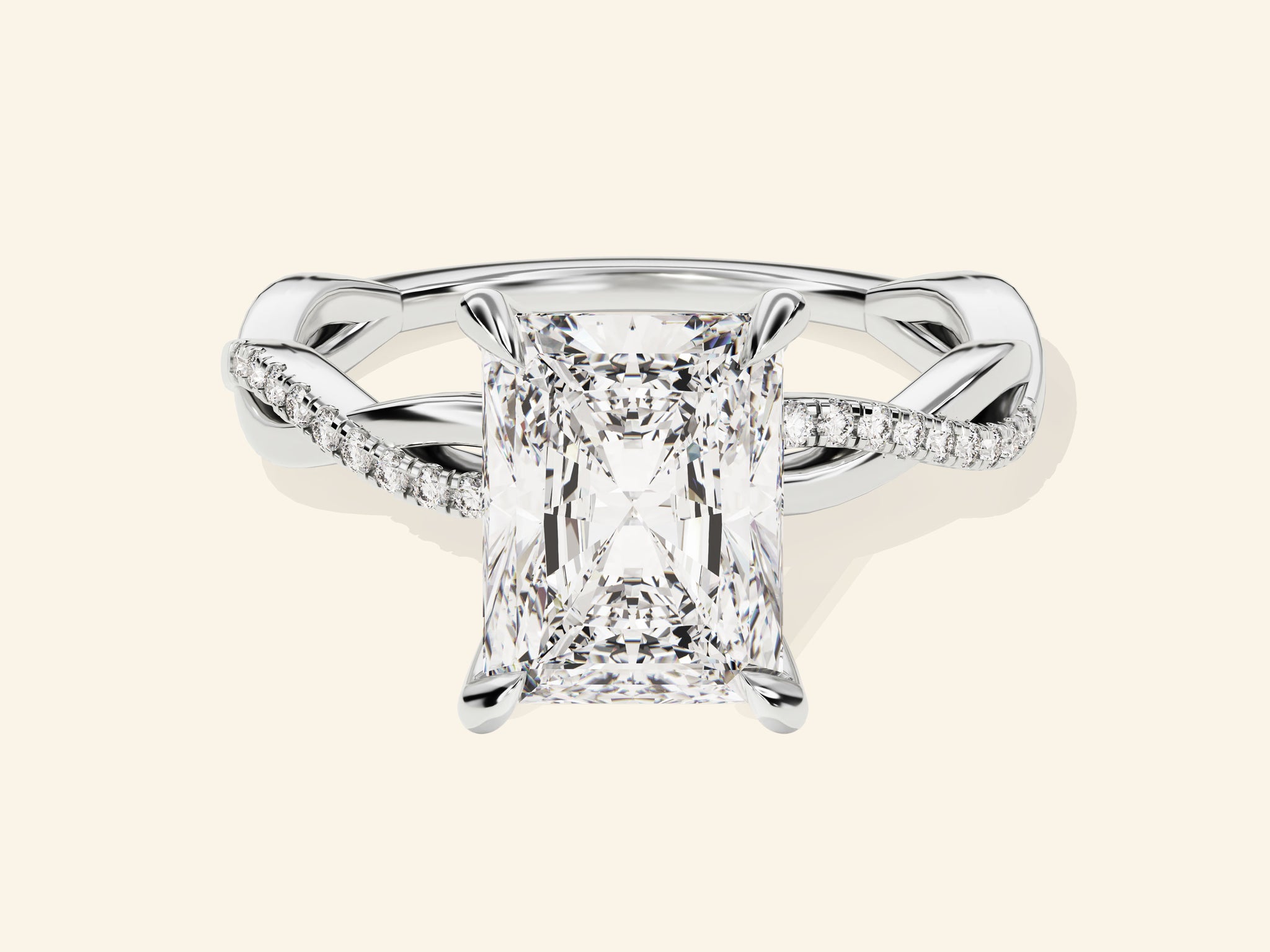 An enduring expression of elegance, this Radiant Twisted Engagement Ring is crafted with care in 14k solid gold, gold vermeil, or sterling silver. Its brilliant 3 carat radiant-cut stone sits on a slim, refined band, designed to shine with the quiet confidence of lab grown diamond or moissanite stone in every moment. Whether given as a symbol of love, a celebration of a milestone, or simply a piece to cherish every day, this ring offers lasting beauty and meaning.