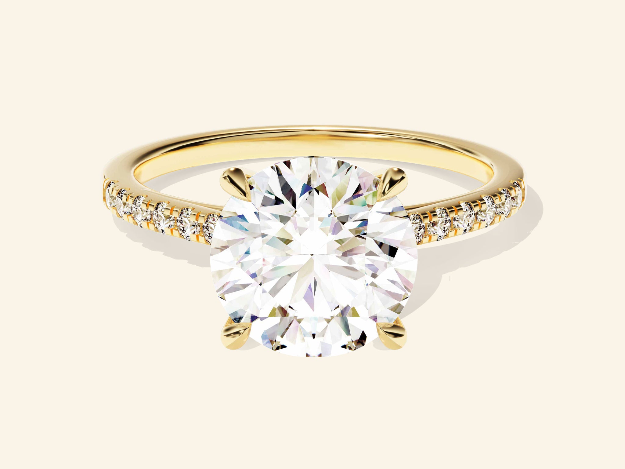 An enduring expression of elegance, this Round Cut Engagement Ring with Pave Set Side Stones is crafted with care in 14k solid gold, gold vermeil, or sterling silver. Its brilliant 3 carat round-cut stone sits on a slim, refined band, designed to shine with the quiet confidence of lab grown diamond or moissanite stone in every moment. Whether given as a symbol of love, a celebration of a milestone, or simply a piece to cherish every day, this ring offers lasting beauty and meaning.